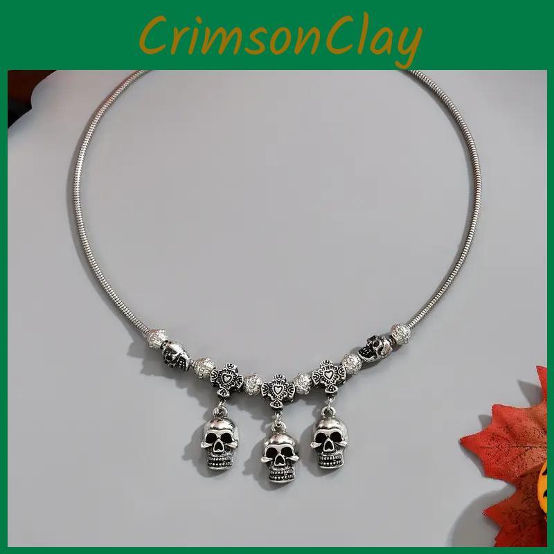This dark-style chain necklace features a geometric alloy design with a skeleton head pendant and tassel accents, creating a bold costume accessory. Crafted from durable alloy with electroplating. Ideal for Halloween parties or gothic-themed events, it enhances any costume look. Easy to maintain, wipe clean with a damp cloth for long-lasting wear.