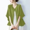 ZANZEA Women Casual Round Neck Half Sleeve Loose Cardigan Blouse
