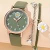 Women Fashion Watch Simple Leather Bracelet Watch Set Quartz Wristwatches Casual Female Clock