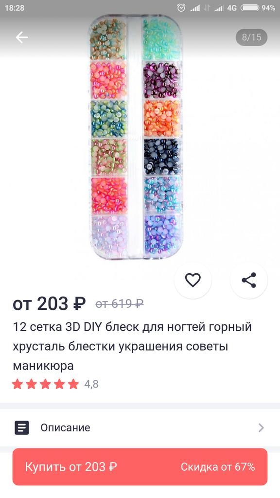 Заказала одно, по факту получила другое, доставка быстрая, но стразы выглядят как обычный пластик плохого качества, заказывала стразы одного цвета, по факту пришли 2 цвета, вторые совсем не то, что хотела, думаю пойдут в помойку