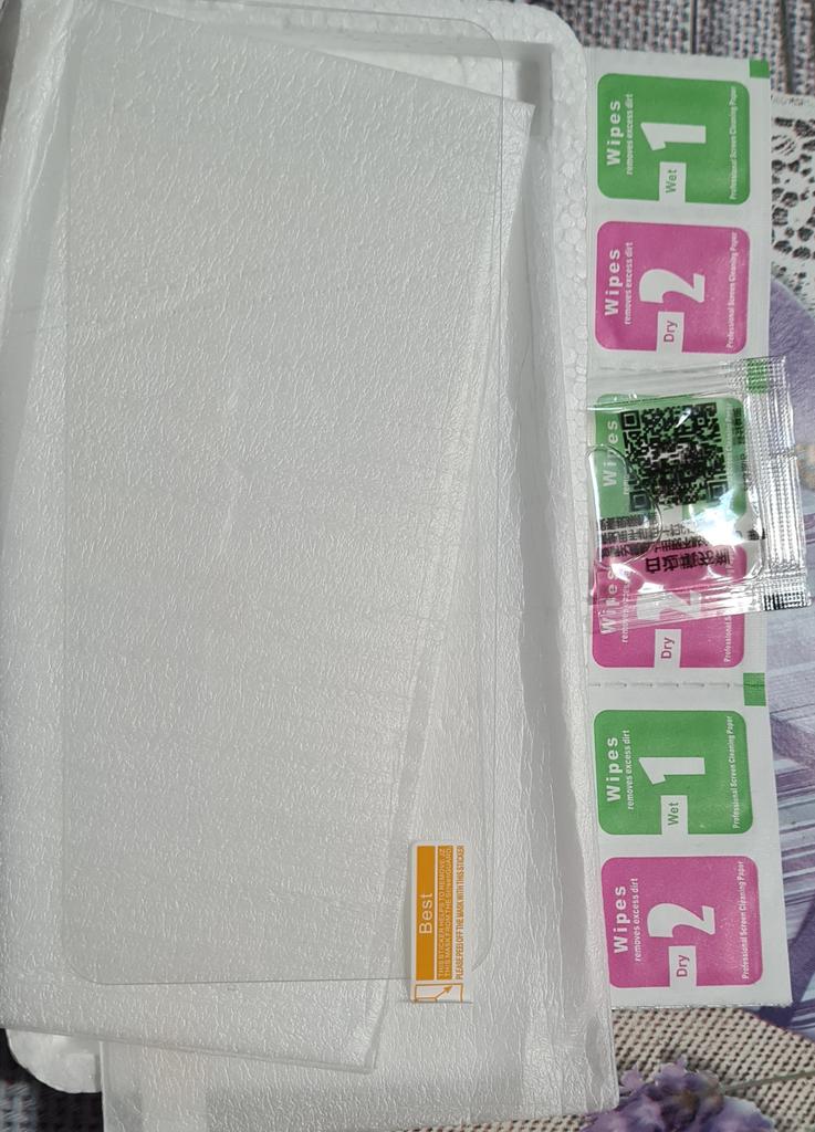 Стекло закрывает только плоскую часть экрана. Хотя приклеивается по всей плоской поверхности, датчик отпечатка не работает, неделю мучался и выбросил стекло. Салфетки в комплекте настолько миниатюрные, что очень не удобно пользоваться.