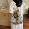 Women Rainbow Stripe Hasp Small Bag Large Capacity Shopping Leisure Tote Bag