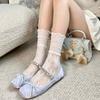 Black White Socks Women Hollow Out Mesh Thin Breathable Summer Loose Long Socks Lolita Sweet Girls Kawaii Cute Lace Floral Socks