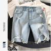 Erkek Modaya Uygun Yırtık Kot Şort - Bol Kesim, Yıkanmış, Yaz için Geniş Paça.