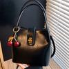 Handheld small bag women's new ins fashion minimalist style shoulder messenger bag oily leather bucket bag