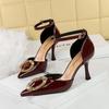 Fashion Fashion Pointed High Heels Women Pumps Metal Decoration Women Heels Patent Leather Women's Sandals Summer Luxury Banquet Shoes
